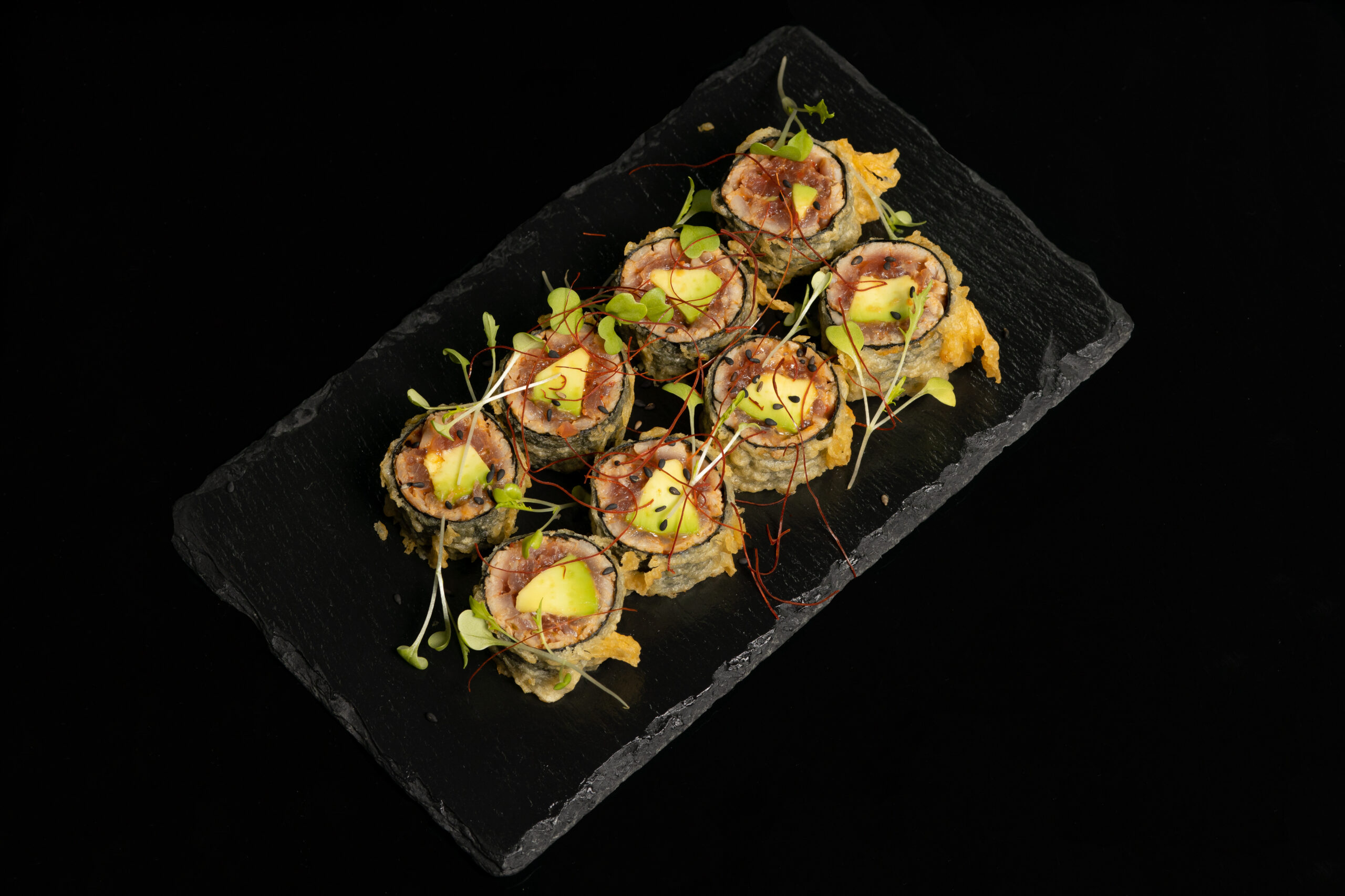 Avocado, Tempura, Salsa Ponzu e Pesce a scelta: Salmone – Tonno – Capasanta – Gambero